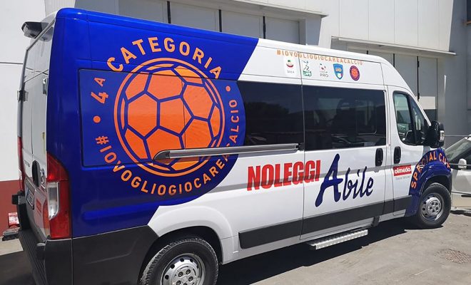 L’incontro è stato l’occasione per consegnare alla Lega Quarta Categoria tre Fiat Ducato allestiti e messi a disposizione in comodato da Olmedo con lo scopo di rendere abile un’attività normale come quella di raggiungere i campi per gli atleti “special” di tutta Italia.