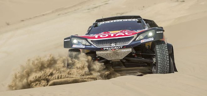 Due Peugeot 3008 DKR Maxi aprono la pista della lunga speciale, un’incognita di 300 chilometri. Sono la numero 308 di Despres e Castera, che hanno vinto la Tappa precedente e sono intesta al Rally, e la 300 di “Monsieur Dakar” Stephane Peterhansel, che con Jean-Paul Cottret ha vinto le ultime due edizioni della Dakar. “Peter” raggiunge Despres sulla pista e passa al comando, e i due Equipaggi si alternano a condurre le operazioni di navigazione. È una soluzione realmente opportuna, perché il ritmo resta alto, ma non elevatissimo, e ad essere privilegiata è la sicurezza. Oggi, con il 60% di sabbia e di navigazione nell’ignoto del fuori-pista, è prevedibile che chi è partito da dietro godrà di un vantaggio enorme. Sainz e Cruz, con la 3008 DKR #303, e Loeb e Elena con la #306, si agganciano ai battistrada. Logico anche che possa essere la giornata del “nemico”, e infatti Al-Attiyah, partito dalle retrovie, non fa fatica a seguire i segnali… di polvere che sia alzano dalle Michelin della 3008 DKR e ad aggiudicarsi la Tappa dopo che il “convoglio” delle Peugeot ha aperto la pista per tutta la Speciale. Era prevedibile, in parte, previsto, e fa parte del gioco più raffinato delle Dakar più interessanti.