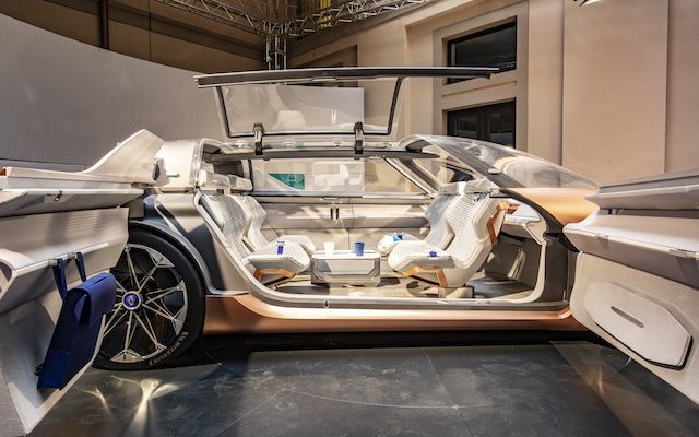 Concepita come estensione della casa su strada, Renault SYMBIOZ vuole essere vivibile come un’abitazione moderna. Rappresenta un nuovo spazio vitale per un nuovo tipo di libertà. Il doppio sistema di apertura delle porte, che presenta una cerniera posteriore nella parte bassa e un’apertura a farfalla nella parte vetrata superiore – funziona come un fiore che apre i suoi petali. In assenza del montante B, il sistema invita gli occupanti dell’abitacolo a salire a bordo esattamente come attraverserebbero la soglia di casa loro. Non c’è bisogno di piegarsi né di tenersi lateralmente. Auto e casa condividono molti degli stessi materiali (tessuti, legno, marmo pregiato, porcellana) per dare l’impressione di entrare in uno spazio familiare, caldo e rassicurante. Il tessuto del sedile appositamente creato da Aleksandra Gaca è lo stesso che viene utilizzato per l’imbottitura del divano a casa.