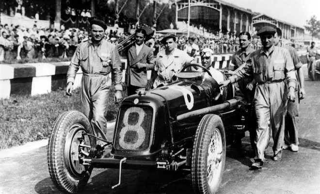 La Maserati 6C-34 venne progettata da Ernesto Maserati a seguito della nuova formula internazionale basata sul limite di peso massimo di 750 kg. Dotata di un motore 6 cilindri in linea da 270 CV e con una velocità massima di 250 km/h, debuttò appena uscita dalla fabbrica, il 9 settembre 1934 al Gran Premio d’Italia a Monza: Tazio Nuvolari la portò al quinto posto assoluto. “Nivola” sempre al volante della 6C-34 avrà un finale di stagione esaltante: il 30 settembre si classificò terzo a Brno e, nelle settimane successive, ottenne due vittorie particolarmente prestigiose: il 14 ottobre tagliò per primo il traguardo al Circuito di Modena e pochi giorni dopo, il 21 ottobre, si aggiudicò la Coppa Principessa di Piemonte sul Circuito di Napoli.