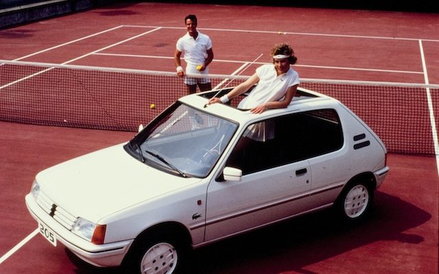 Ed ecco che la 205, la vettura giovane per i giovani, si propone in allestimenti e serie speciali che si rifanno chiaramente al mondo del tennis, a partire, come ovvio che sia, dalla versione battezzata Roland Garros (denominazione che in seguito sarà riproposta anche per altri modelli della Casa) per proseguire con la collaborazione con un certo René Lacoste.