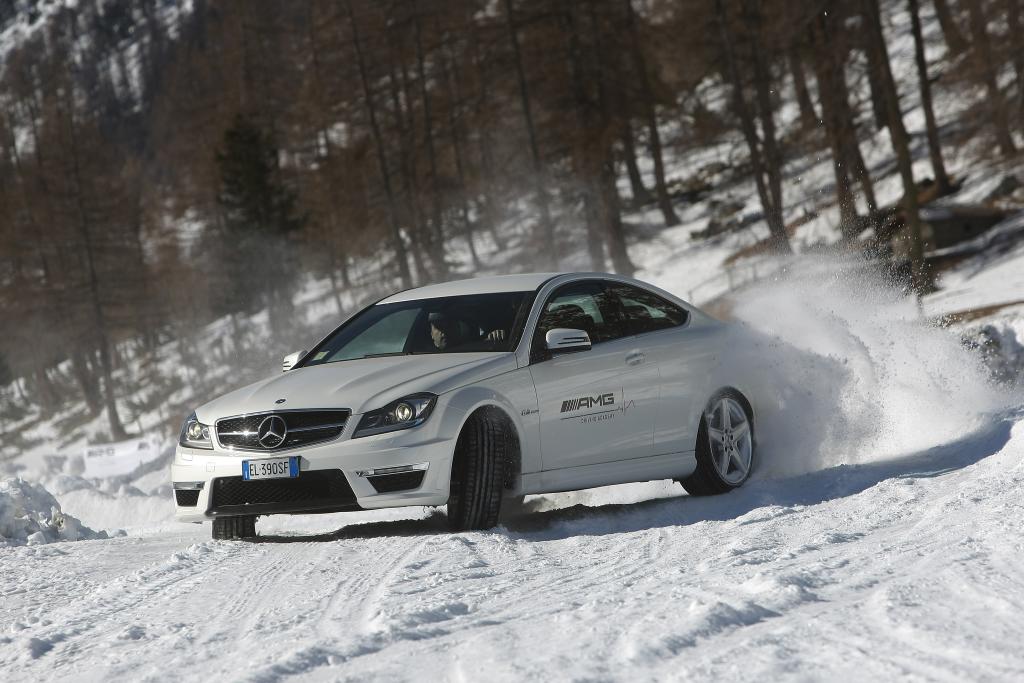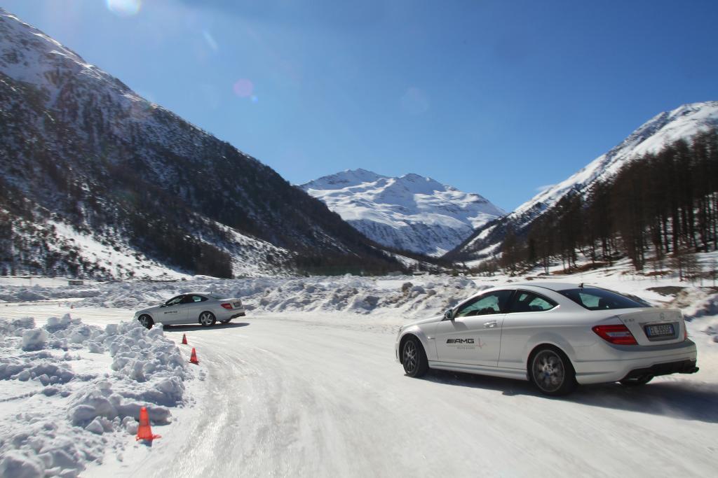 A differenza del corso AMG Base, il Corso AMG Neve, consente di approfondire le tecniche di guida sportiva su fondi a ridotta aderenza, permettendo di sfruttare le potenzialità delle vetture AMG anche su neve e ghiaccio. L’introduzione teorica, oltre ai fondamenti della fisica, verte soprattutto sui temi della tecnica di sterzata in curva, del punto di frenata e, più in generale, delle differenze nel comportamento dinamico dell’auto sul ghiaccio. Al centro di questa fase didattica anche il funzionamento dei sistemi di assistenza alla guida, le norme di sicurezza ed il comportamento idoneo per garantire uno svolgimento sicuro del training. La sessione in pista permette di testare in prima persona quanto appreso in aula. Nel 2015 sono previste due giornate di corso Neve presso l’impianto Snow Ice di Cortina D’Ampezzo.