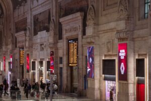 Il progetto Cliorama non si limita allo spazio espositivo, ma dialoga attivamente con Milano attraverso una “domination” urbana. Luoghi simbolo come la Stazione Centrale, l’aeroporto di Linate, Piazza 5 Giornate e il quartiere Brera sono diventati parte integrante di questo racconto.