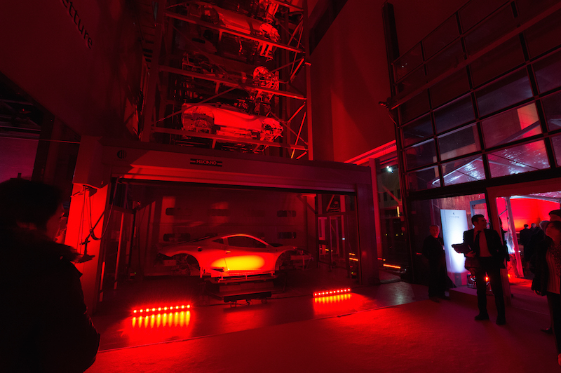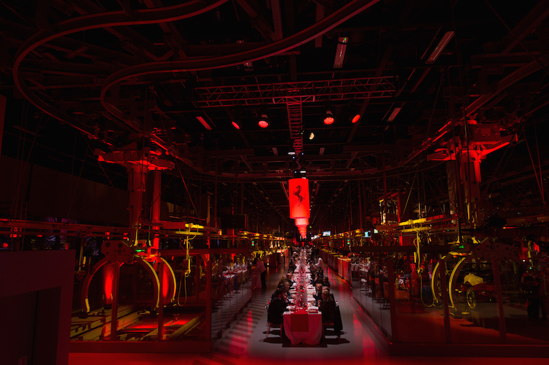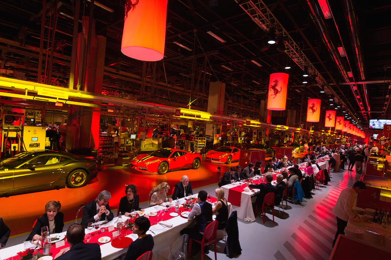 Gli invitati hanno vissuto due momenti esclusivi. In un primo tempo hanno potuto visitare in anteprima il nuovo edificio della Gestione Sportiva, che sarà a sua volta inaugurato ufficialmente a breve. E successivamente sono stati portati sulla linea delle 8 cilindri, quelle dove verrà realizzata 488 GTB e dove si è tenuto lo spettacolo più atteso: quello dell’unveiling della nuova vettura e, in seguito, la cena di gala.