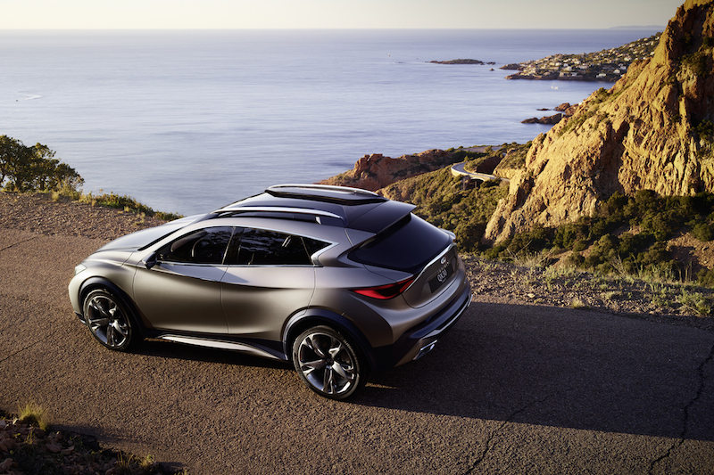 Infiniti ha segnalato per la prima volta la sua intenzione di affacciarsi al segmento delle compatte di lusso quando svelò la Q30 Concept al Salone di Francoforte, nel 2013. L’introduzione della QX30 Concept costituisce un’altra tappa fondamentale della strategia aggressiva elaborata da Infiniti per crescere nei principali mercati internazionali, in particolare in Cina e in Europa, ampliando al tempo stesso la propria offerta nei mercati in cui vantava già una presenza consolidata, come ad esempio gli Stati Uniti.