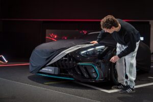 Realizzata in soli 200 esemplari in tutto il mondo, questa edizione speciale sembra letteralmente cucita addosso al pilota. Il look è un chiaro omaggio al Mercedes AMG PETRONAS F1 Team: la base in nero ossidiana metallizzato è arricchita da un motivo a stelle Mercedes argentate dipinto a mano sulle fiancate. Non mancano i celebri accenti in tinta PETRONAS, che decorano con eleganza lo splitter anteriore, le prese d’aria, le soglie laterali e il diffusore posteriore, creando un legame estetico indissolubile con la monoposto da competizione.