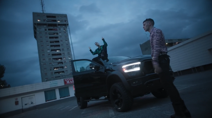 La prima delle quali – all’incirca a metà video – vede Mahmood e Massimo Pericolo viaggiare seduti nel cassone del pick-up nero griffato MILITEM, intento ad attraversare la Milano by night.