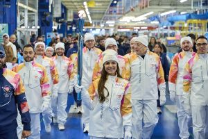 A rendere la giornata ancora più significativa è stata la presenza di Stefania Belmondo, chiamata come tedofora d’eccezione. Leggenda dello sci di fondo, Belmondo porta con sé un palmarès che parla da solo: 10 medaglie olimpiche, 13 titoli mondiali, 23 vittorie in Coppa del Mondo. È lei ad aver inaugurato e chiuso la cerimonia nello stabilimento, condividendo con i presenti la sua testimonianza: quella di chi ha vissuto l’Olimpiade non come un evento, ma come un percorso di disciplina, cadute e ripartenze. E in una fabbrica, dove tutto si misura su continuità e precisione, quel racconto trova un’eco naturale.