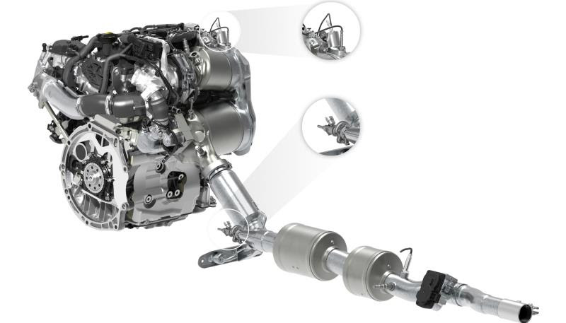 Le prestazioni del raffreddamento per il sistema di ricircolo dei gas di scarico a bassa pressione sono state migliorate del 25%: questo riduce la formazione di ossidi di azoto nella camera di combustione ai carichi elevati, quando si chiede al motore il massimo dell’erogazione. L’iniezione del carburante nella camera di combustione opera con una precisione elevata e costante grazie a un sensore che monitora la chiusura degli iniettori. Questi possono effettuare fino a nove iniezioni per ciclo, con singole quantità inferiori alla punta di uno spillo. La pressione massima d’iniezione arriva a 2.200 bar, equivalente al peso di due Golf per centimetro quadrato. Schiuma isolante sotto al cofano motore e un nuovo silenziatore migliorano l’acustica. Come in precedenza, il
