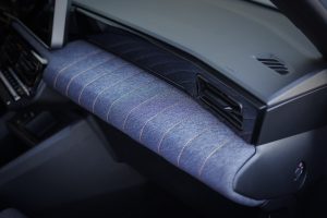 Con Techno, il tono cambia completamente: qui l’ispirazione arriva dal mondo del denim. Il tessuto textile refined (TEP) blu scuro si abbina a un poliestere riciclato in blu saturo, per un look informale e contemporaneo. I piccoli rivetti color rame sui sedili nascondono l’easter egg “Allez-y vous êtes en Renault 4”, mentre le cuciture ramate e il tessuto trapuntato su plancia e pannelli porta richiamano il linguaggio dei jeans premium. È la versione perfetta per chi vede la city car elettrica come un’estensione naturale del proprio guardaroba.