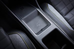 Torna anche il simpatico cestino di vimini porta-pane, già visto su Renault 5 E-Tech Electric, un dettaglio che mescola ironia e praticità e che fa sorridere ogni volta che lo si aggancia al suo supporto. Accanto a lui c’è la cover intercambiabile dell’e-pop shifter, la piccola calotta che riveste il comando del cambio: anche qui i temi NumbeR4, FloweR4 e Br4celet permettono di aggiungere un tocco personale a un elemento che di solito è puramente funzionale.