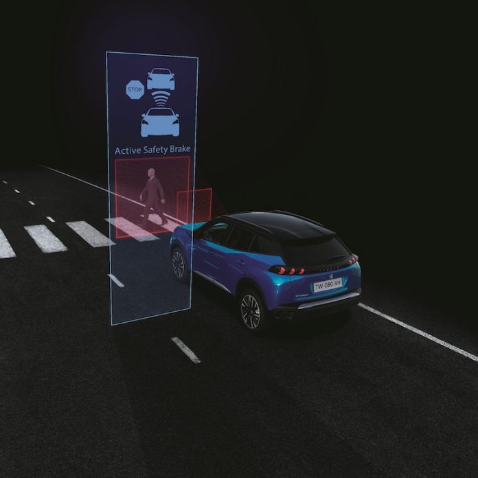 Per rafforzare ulteriormente la sicurezza, la gamma PEUGEOT offre la funzione di avviso di distanza (avviso di rischio di collisione), che rileva le auto che sono ferme o che si muovono nella stessa direzione di movimento, oltre ai pedoni presenti sulla strada. Avvisa il conducente se il veicolo si avvicina troppo e si rischia di scontrarsi con quelli che precedono. Questo dispositivo è completato da un sistema di frenata di emergenza automatico all’avanguardia (Active Safety Brake), in grado di rilevare pedoni e ciclisti, di giorno o di notte, in un ampio intervallo di velocità: tra 5 km/h e 140 km/h.